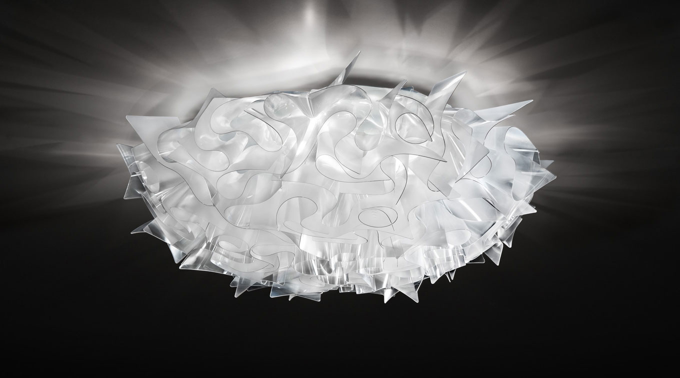Animates space with elegance and spontaneity, awakening memories of a past full of celebrity divas and limelight with its shape and chromes. LED illuminated cylinders are arranged at different heights around a central ring and alternate shades of precious metals in pastel colours with transparencies. The brushing of the metallisation leaves to the light the task of creating the suggested decorum.